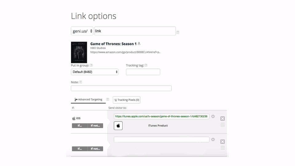 Edit your links to add advanced targets, pixels and change the default destination in real time, even after they're live, to avoid those headaches.