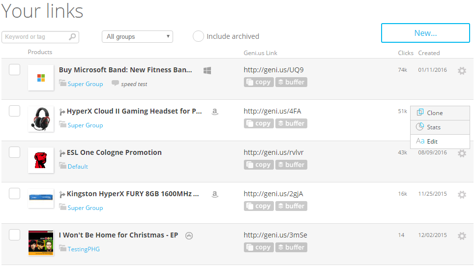 When you’re creating a lot of links and promotions, it gets tough to keep track of which links were used for what campaign. Use Groups to sort your links by campaign, product type, and more.